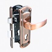 16 моделей. Врезные замки с ручками представлены в 4-х популярных цветах: латунь, хром, старая бронза, старая медь. 2 формы ручек и 2 модификации механизма секрета – ключ/ключ, ключ/вертушка.
