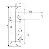 Материал планки - сталь, ручки - пластик с добавлением антипирена для снижения горючести. Межосевое расстояние - 72 мм, размеры планки - 46х176 мм. В комплект входят 2 винтовые стяжки, квадрат со стороной 9мм, 2 пружины., крепеж.