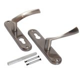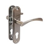 Комплект ручек, подпружиненный, на планке под цилиндровый механизм замка. Предназначен для установки на деревянные и металлические двери толщиной 35-45 мм. Имеет гальваническое покрытие.