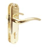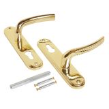 Комплект ручек, подпружиненный, на планке под цилиндровый механизм замка. Предназначен для установки на деревянные и металлические двери толщиной 35-45 мм. Имеет гальваническое покрытие.