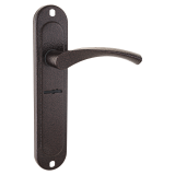 Ручка на планке под сувальдный механизм. Материал - сталь, полимерное покрытие "медный антик". Со шторкой. Межосевое расстояние - 42 мм. Размеры планки - мм. Каплевидная ручка длиной мм. В комплект входят винтовые стяжки и квадрат длиной мм.