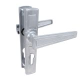 Ручка на планке для замка с межосевым расстоянием 55мм. Материал ручки - алюминий, планки - сталь. Крепление - стяжки.