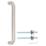 Ручка-скоба дверная. Материал - нержавеющая сталь марка 204. Расстояние между креплениями - 300 мм, общая длина ручки - 325,4 мм, высота - 70 мм. В комплекте соединительные стяжки М8.