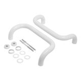 В комплект входят правая и левая ручки, крепежный комплект (две шпильки, четыре шайбы из ЦАМа и четыре амортизирующие шайбы из полиэтилена)