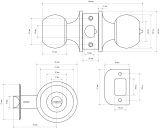 Ручка-защелка для межкомнатных дверей типа – кноб. Круглой формы, выполнена из  стали с гальваническим покрытием. Имеет фиксацию изнутри. Предназначена для дверей толщиной 35-45 мм. Регулируемый бексет: 60-70 мм. Скругленная защелка размером 14х19 мм с вылетом 12 мм. Габариты корпуса врезной защелки 85х23х20 мм.