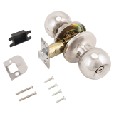 Ручка-защелка для межкомнатных дверей типа – кноб. Круглой формы, выполнена из стали с гальваническим покрытием. Имеет фиксацию изнутри. Предназначена для дверей толщиной 35-45 мм. Регулируемый бексет: 60-70 мм. Скругленная защелка размером 14х19 мм с вылетом 12 мм. Габариты корпуса врезной защелки 85х23х20 мм.