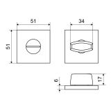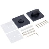 Комплект сантехнической завертки-фиксатора на тонкой квадратной накладке, для защелок, замков, задвижек. Материал - алюминиевый сплав с гальваническим покрытием. Комплектуются винтовыми стяжками, шурупами, квадратным стержнем в сечении 6х6 мм и длиной 55 мм.