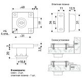 Мебельный замок, устанавливается на двери и ящики максимальной толщиной - 22мм.
