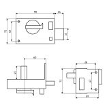 Засов прямоугольной формы 31х24 мм Удаление ключевого отверстия - 60 мм.