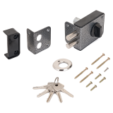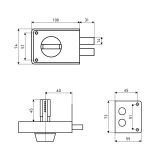 Засов из двух цилиндрических ригелей диаметром 14 мм, с максимальным вылетом 31 мм. Удаление ключевого отверстия - 60 мм.