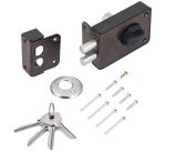 Замок накладной цилиндровый с вертушкой. Предназначен для установки на деревянные двери. Засов из двух цилиндрических ригелей диаметром 14 мм, с максимальным вылетом 25 мм. Удаление ключевого отверстия - 60 мм. Габариты замка - 100х75х24,5 мм. Комплектация - 4 ключей, запорная планка, накладка. Закрывание и открывание замка изнутри производится ручкой, снаружи ключом. Корпус из ударопрочного пластика со стальной пластиной.