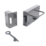 Замок камерный глухой правый типа ЗК-5 предназначен для установки в изоляторах временного содержания, исправительных колониях общего, строгого или особого режимов, следственных изоляторах, лечебных исправительных заведениях, тюрьмах и судах. Замок состоит из стального корпуса с крышкой и сувальдного механизма. Максимальный вылет засова-50 мм, а вылет засова в режиме защелки-15 мм. Количество секретов не менее 80. Толщина замка- 40 мм. Замок по конструкции накладной. В конструкции замка имеется блокировка ключа, т.е. ключ вынимается только в том случае, если замок находится в запертом состоянии. Габариты замка: 220х128х38 мм, вес-3,5 кг. ТУ 78/9-265-02З.