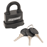 Замок навесной цилиндровый влагозащищенный. Материал корпуса - чугун, покрыт пластиковой оболочкой. Закаленная стальная дужка диаметром 9,5 мм; проем дужки - 26,5 мм по высоте и 24,5 мм по ширине. Габариты замка - 58х83 мм. Замок имеет функцию автоматического закрывания. Комплектуется 3 английскими ключами.
