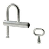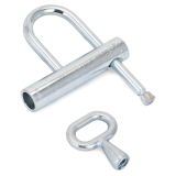 Отличительными особенностями данного замка являются простота и надежность конструкции, которая достигается благодаря минимальному количеству элементов замка, дужка фиксируется винтовым элементом. Замок снабжен компактным трехгранным ключом.