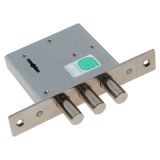 Три цилиндрических ригеля, диаметром 13,5мм, вылет 26мм. Удаление ключевого отверстия 50мм. Стальная торцевая планка, покрытие - никель, ширина планки 26мм. 4ключа.