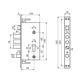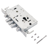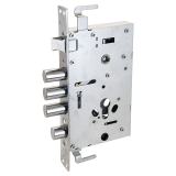 Корпус врезного замка с защелкой, ночной задвижкой и вертикальными тягами. Предназначен для установки в левые китайские металлические двери, в качестве основного замка. Замок закрывается снаружи автоматически, поднятием ручки вверх.