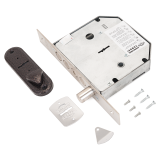 Замок врезной сувальдный с задвижкой для металлических дверей. Замок имеет засов из пяти цилиндрических ригелей диаметром 18 мм, с максимальным вылетом 40 мм, и задвижку с вылетом 21 мм. Удаление ключевого отверстия 66,5 мм. Количество оборотов ключа - 4. Габариты замка - 137,5х146х30 мм. Комплектация - 5 ключей, съемная торцевая планка, комплект накладок, накладка с ручкой-задвижкой. В одном из ригелей расположен закаленный стальной стержень, обеспечивающий надежную защиту от перепиливания. Защита от криминального и силового взлома, высверливания, выдавливания.