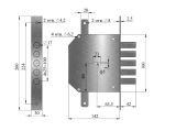 Замок врезной с пятипалым ригелем и двумя дополнительными тягами. Имеет 8и-сувальдный блокирующий механизм сейфового типа.