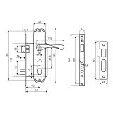 Засов из трех цилиндрических ригелей диаметром 12 мм, с максимальным вылетом 20мм. Универсальная защелка. Стальной корпус с подшипником, покрыт полимерной краской. Межосевое расстояние 61,5 мм. Удаление ключевого отверстия 40 мм. Материал ручек - алюминиевый сплав, планки – сталь.