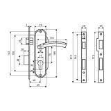 Замок врезной с ручками. Предназначен для установки в деревянные двери толщиной до 40 мм, правого и левого открывания. Дверь может быть закрыта на защелку и открыта с помощью фалевой ручки при открытом засове замка.