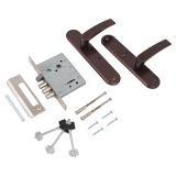 Замок врезной 6-сувальдный с защелкой и фалевыми ручками. Предназначен для установки в двери толщиной 40-50 мм. Замок универсальный, возможна установка как в правые, так и в левые двери.
