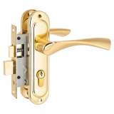Замок врезной с ручками. Предназначен для установки в деревянные двери толщиной до 40мм, правого и левого открывания. Дверь может быть закрыта на защелку и открыта с помощью фалевой ручки при открытом засове замка.