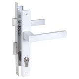 Замок врезной с ручками. Предназначен для установки в калиточные двери, правого и левого открывания. Возможна установка в деревянные двери, а так же двери из алюминиевого профиля. Дверь может быть закрыта на защелку и открыта с помощью фалевой ручки при открытом засове замка.